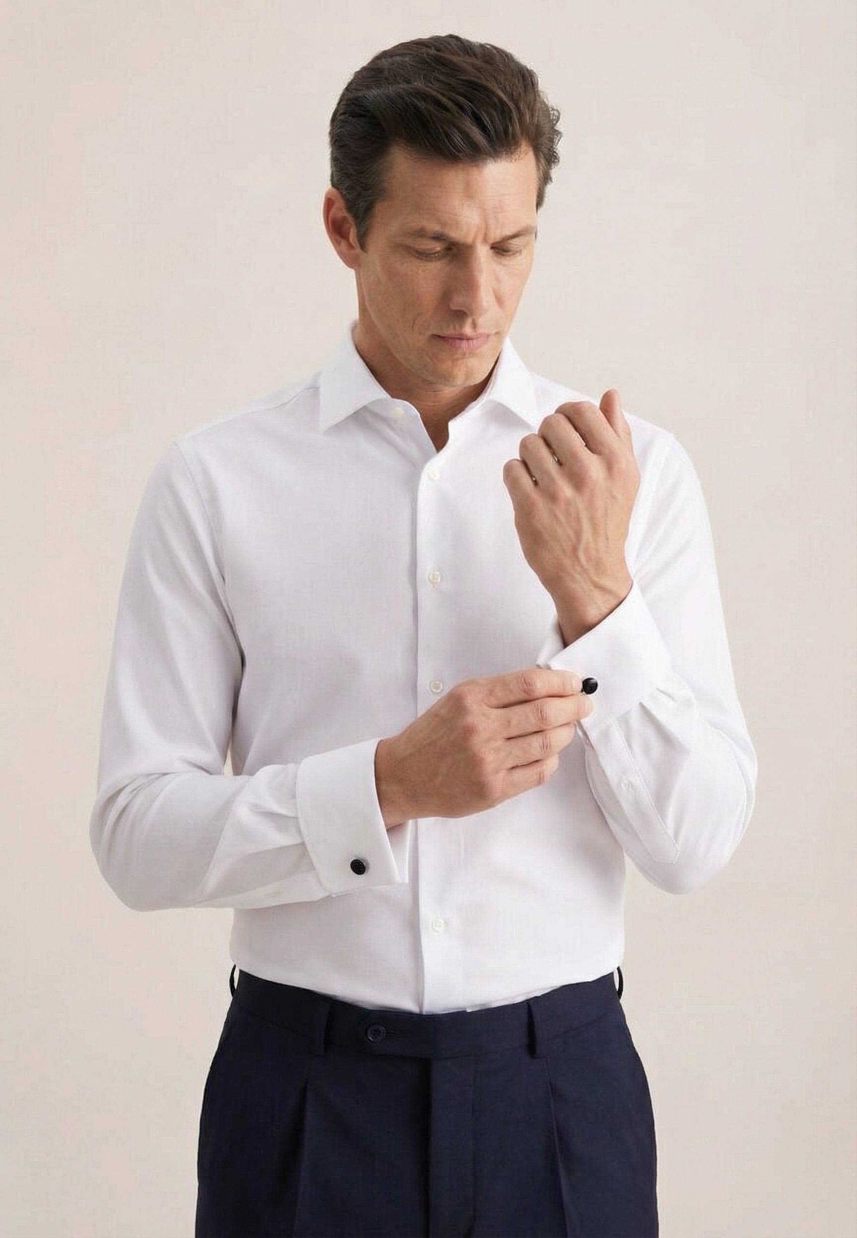 • Прямой силуэт, Классический воротник, Классический (на пуговице), Однотонный, Белый