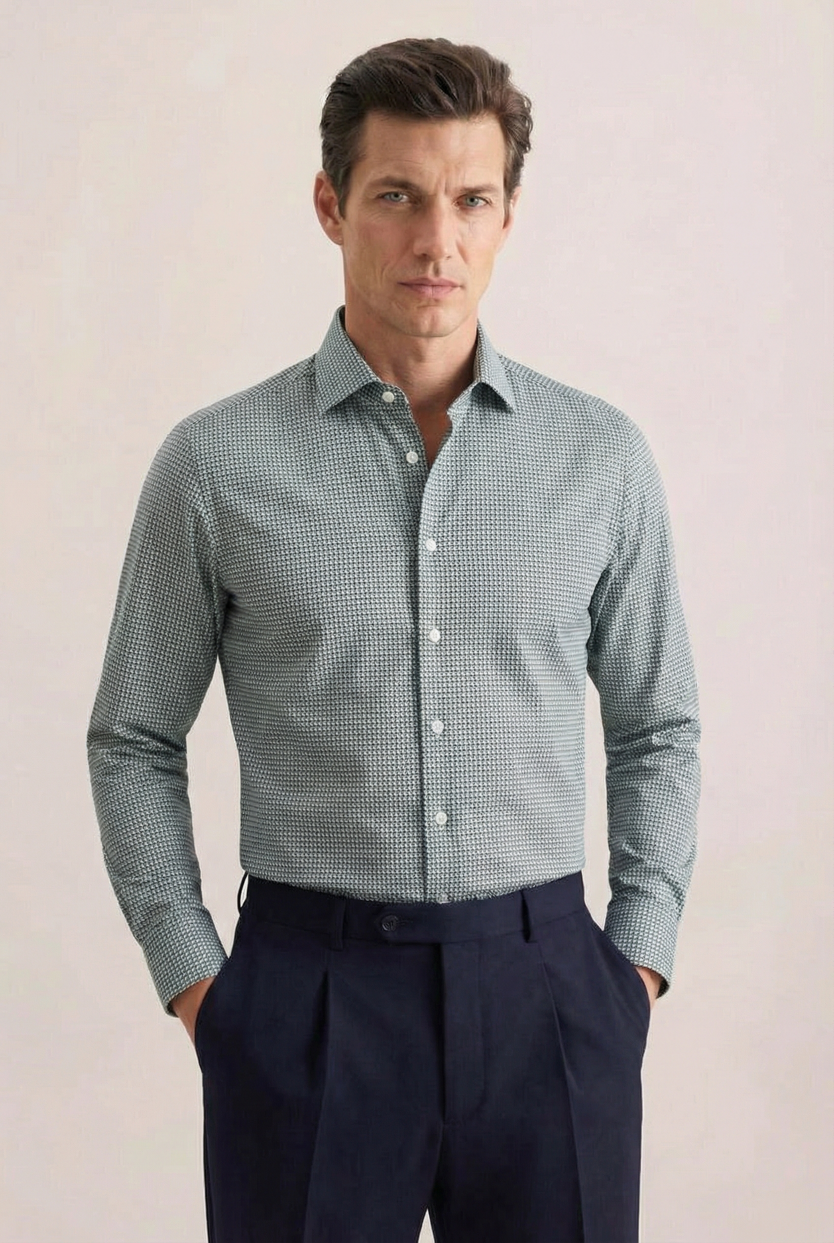 • Shaped Fit, Классический воротник, Синий