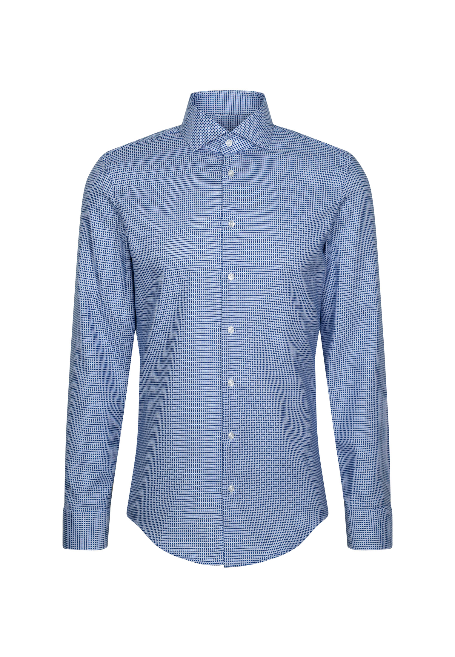• Приталенный силуэт, Классический воротник, Классический (на пуговице), Принт, Синий