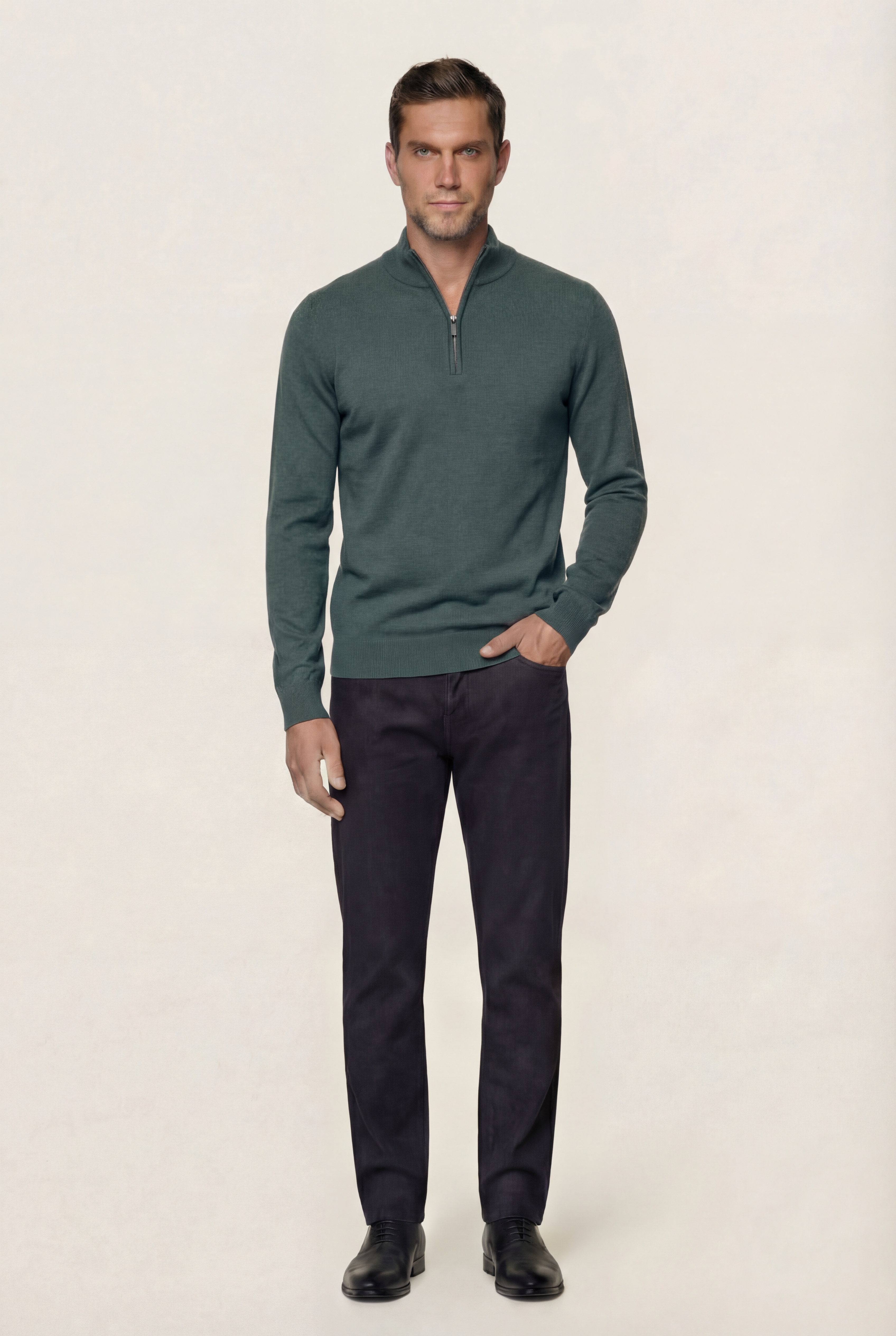 • Мужской джемпер на молнии с воротником-стойкой станет отличным дополнением к вашему гардеробу. Джемпер изготовлен из высококачественного хлопка обеспечивающий мягкость и комфорт при носке. Воротник-стойка придает модели современный и строгий вид, а молния добавляет удобства в использовании, позволяя регулировать уровень комфорта в зависимости от погодных условий. Манжеты и пояс джемпера на трикотажном манжете. Стильный, удобный и практичный джемпер станет отличным дополнением к гардеробу любого мужчины.
